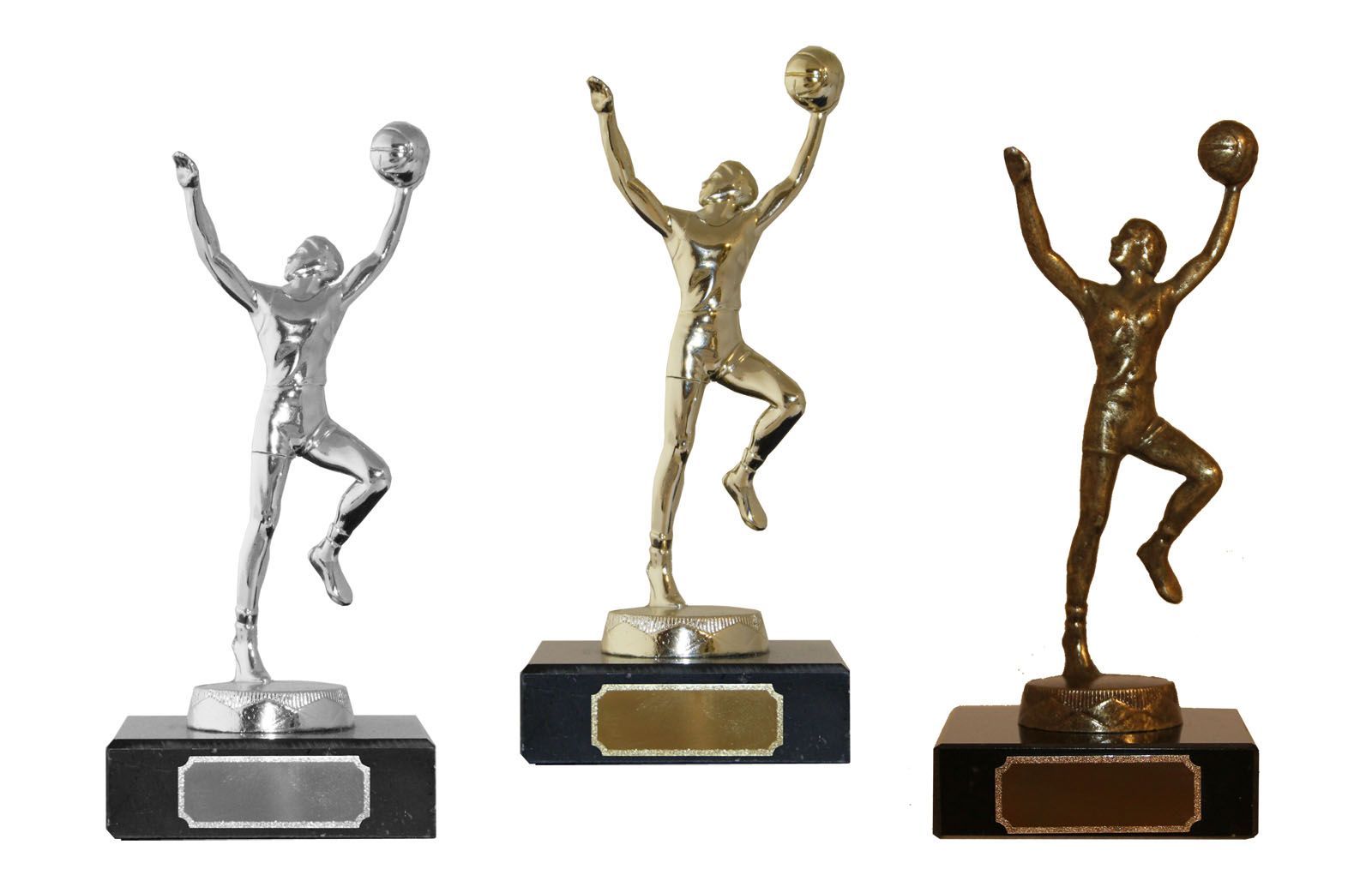 Gull-, sølv- og bronsevalør på marmorsokkel.
