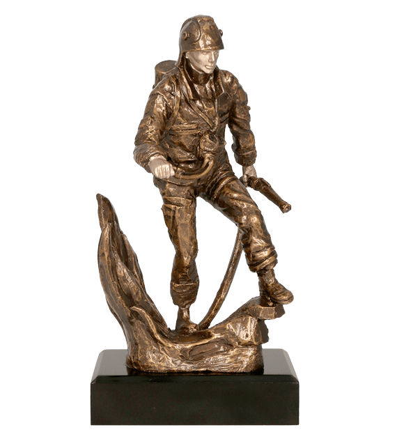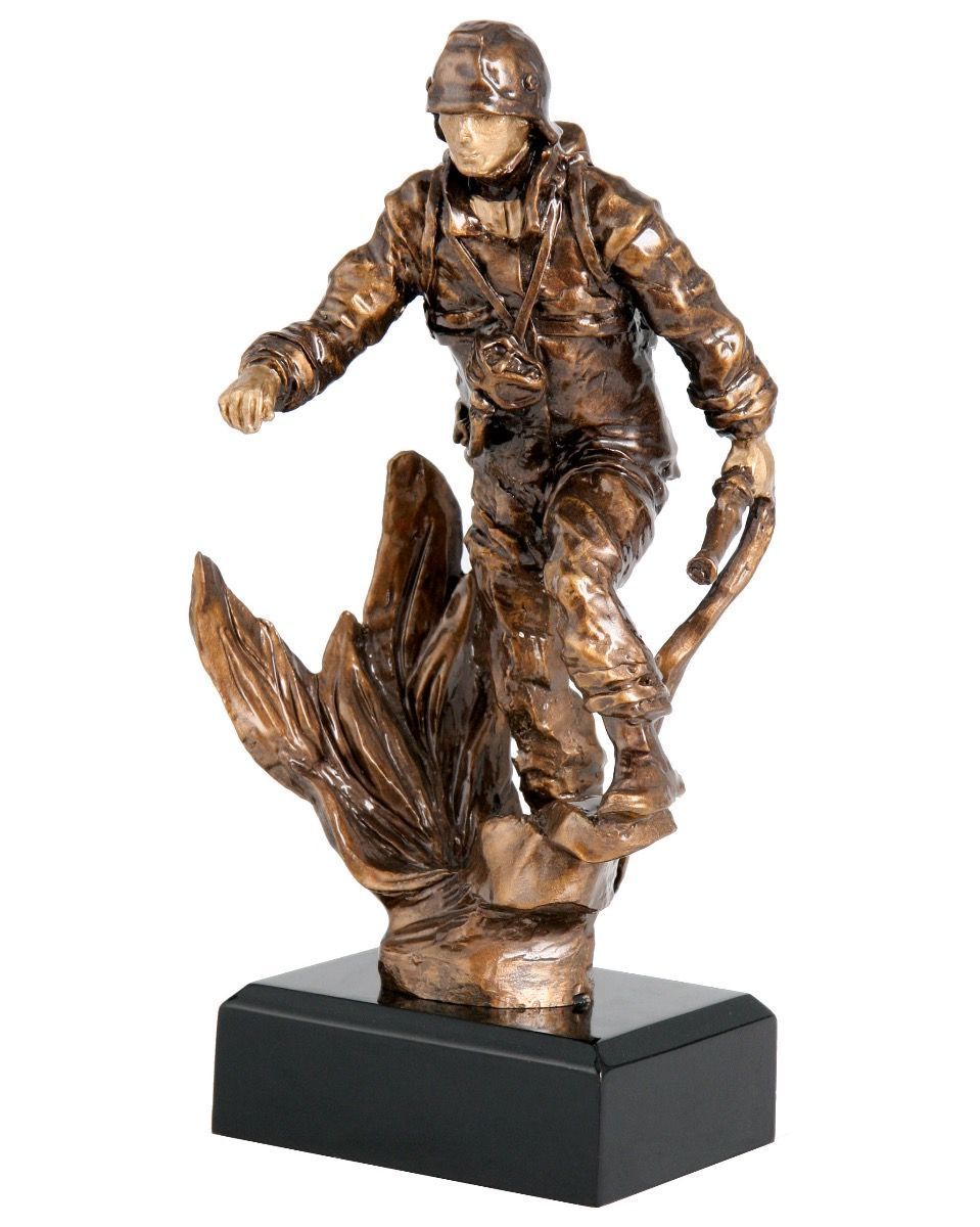 Helstøpt brannmannfigur i resina.