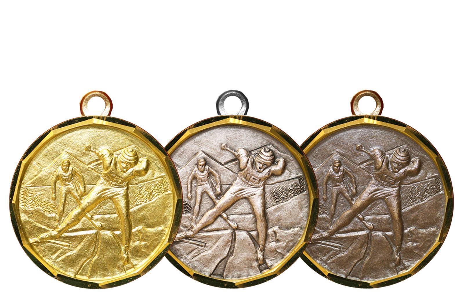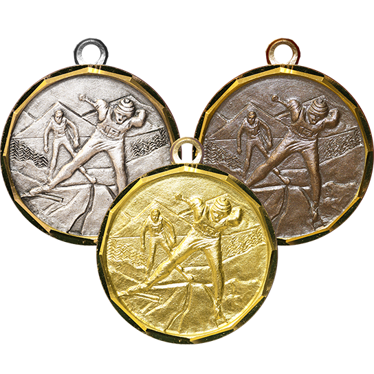Friteknikk langrenn messingmedalje.Laget av messing med diamantslipt kant.