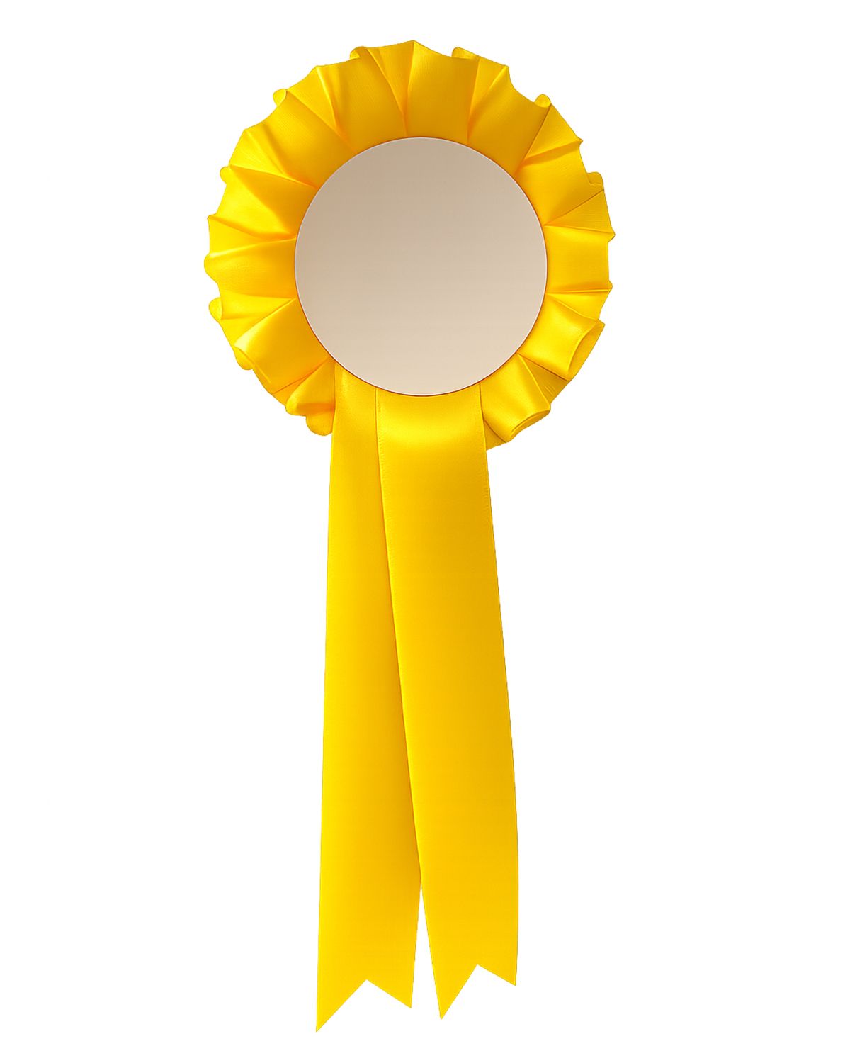 Flott rosett minirosett i knall gul farge. Kan leveres med egen logo og eller tekst i senterfeltet.