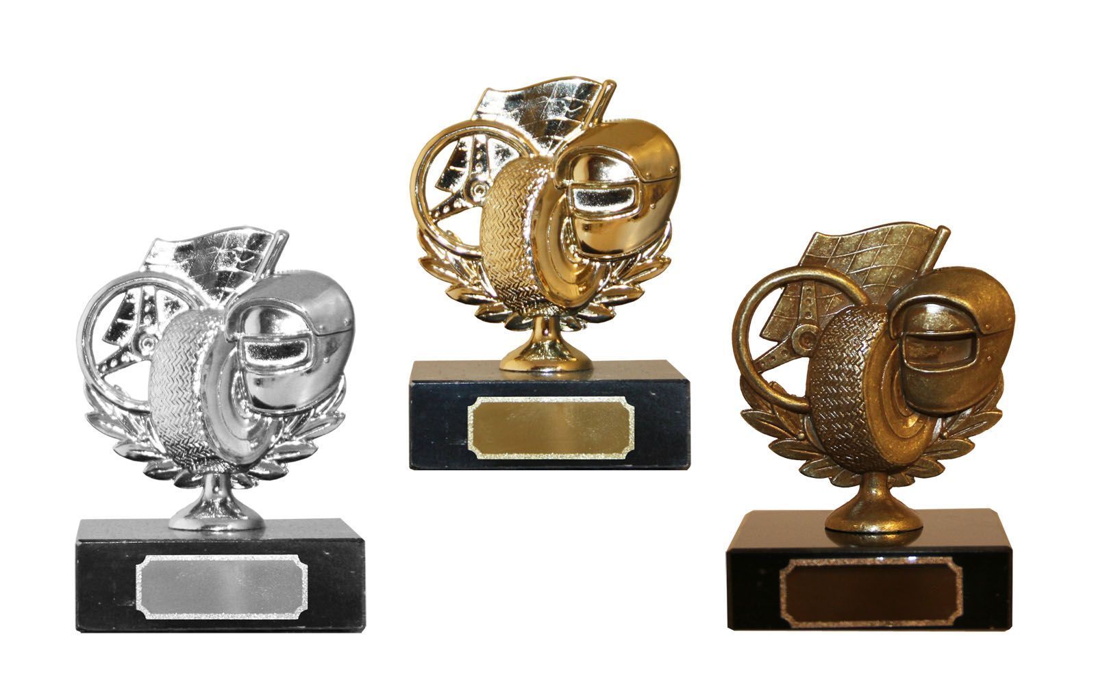 -50% SÅ LENGE LAGERET REKKER (ord.pris 278,-)Motor rally metallfigur på sort marmorsokkel.Gravering på plate som festes på sokkelen.