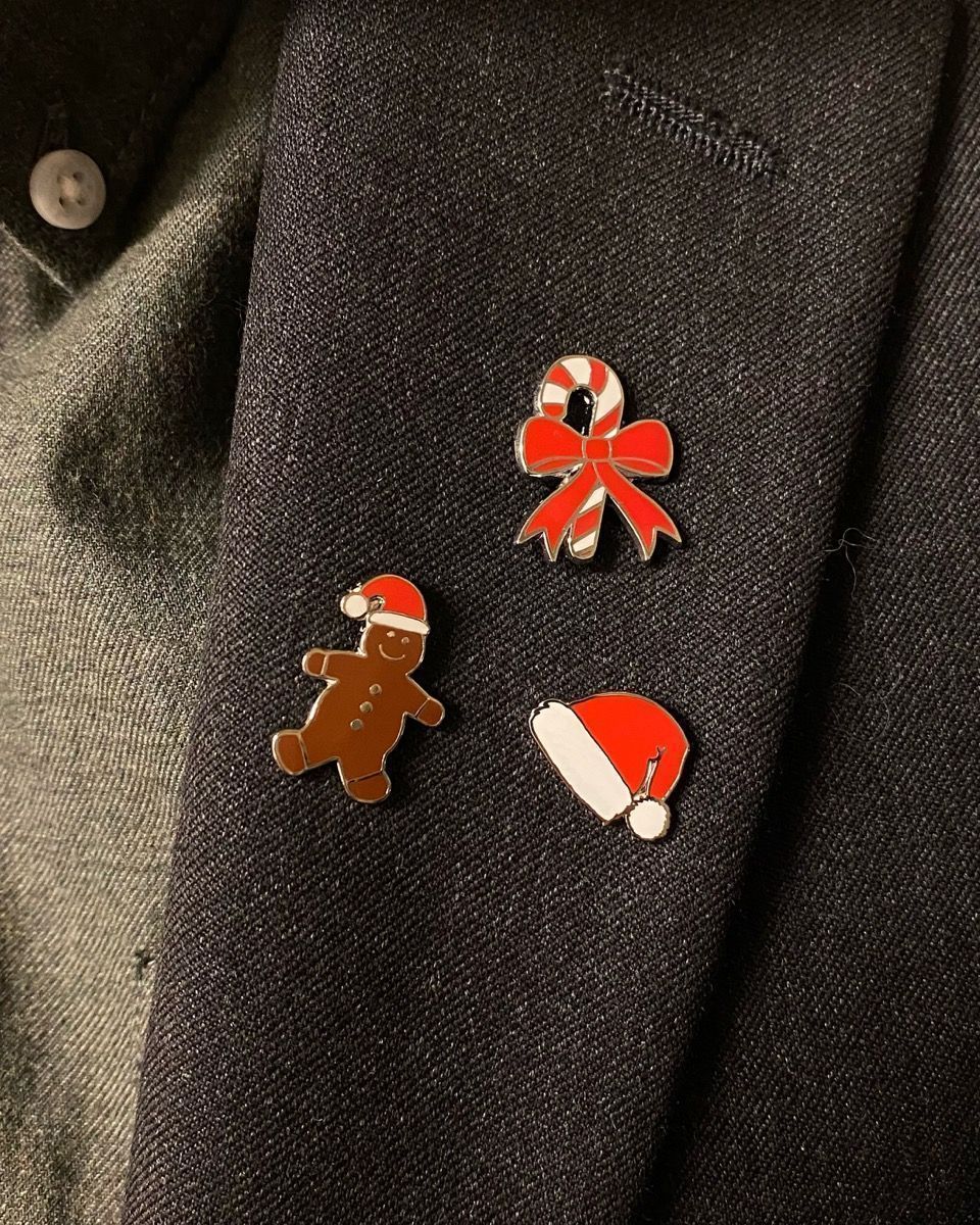 Pinsen med nål på baksiden av pinsen, festes på jakker, gensere, kjoler eller lignende.
