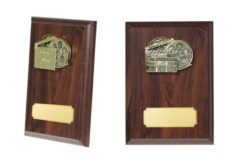 Plakett med 3D-motiv film i gullvalør.