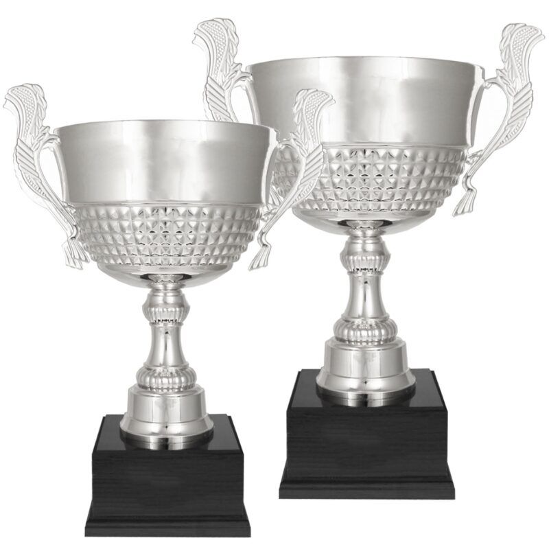 Cup i metall, mellomstykke og sokkel i hardplast.