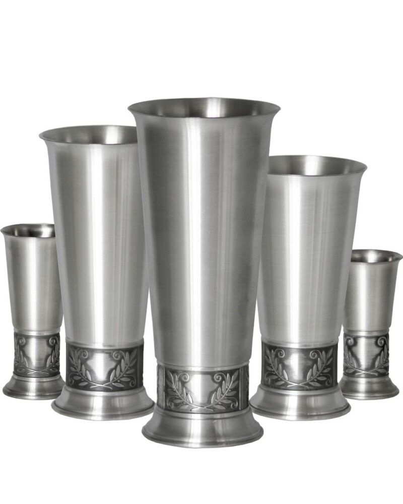 Tradisjonsrike tinnpokaler – kan rundgraveres.