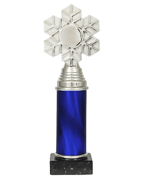 Statuetten Vinternatt, er en lekker statuett i sølvvalør med blå detaljer.