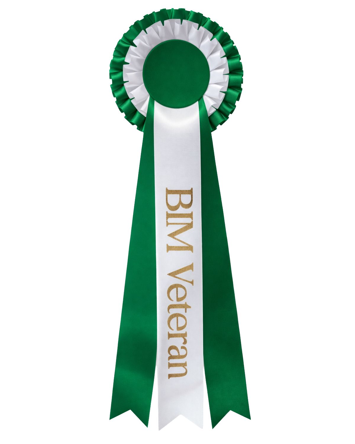 Best i motsatt-rosett i høy kvalitet. Rosetten har trykket BIM Veteran i gullvalør på den midterste halen. Perfekt rosett til hundeutstillinger!