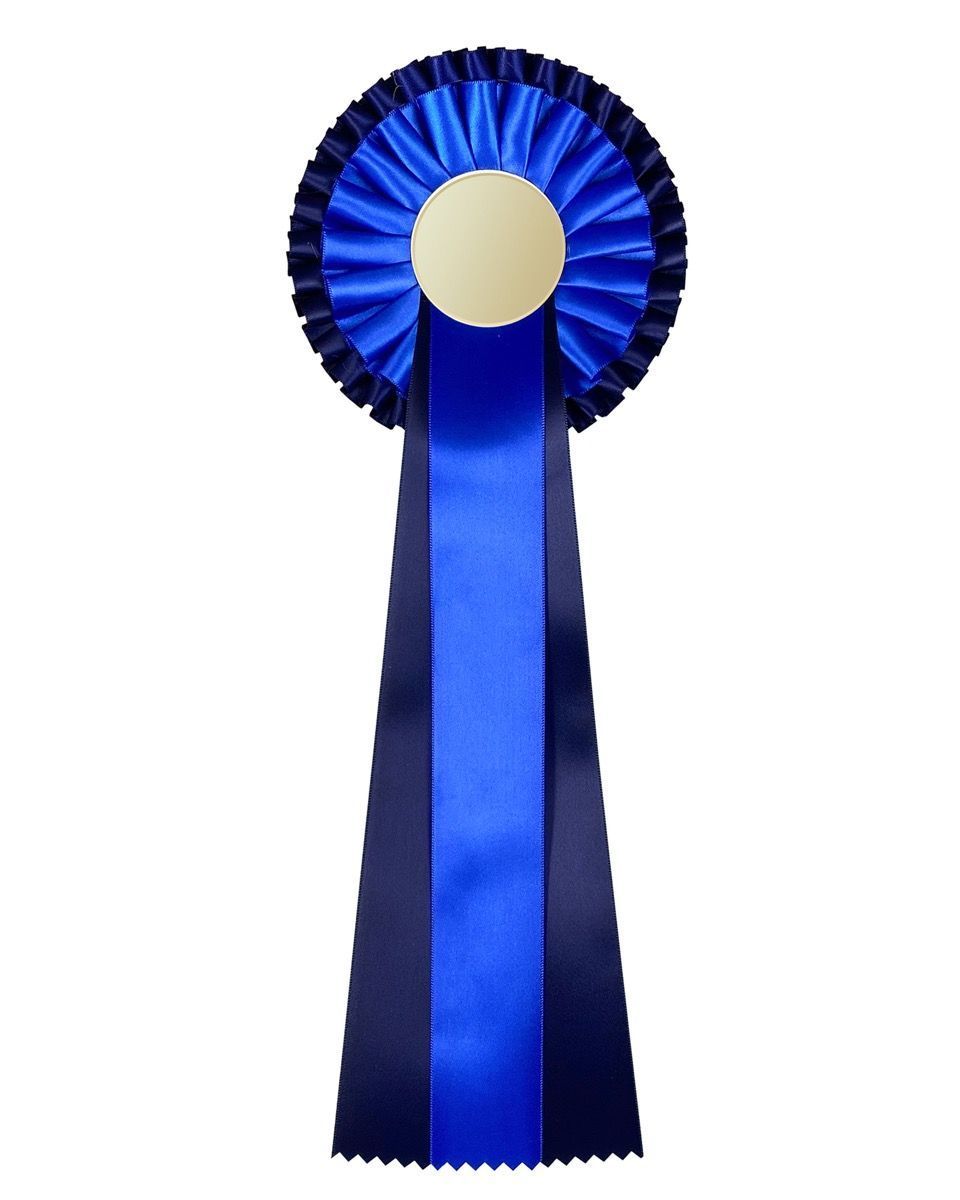 Flott rosett med 3-lags bånd og krans. Kan graveres med egen logo og eller tekst i senterfeltet. Ønsker du trykk på båndet? Kontakt oss!