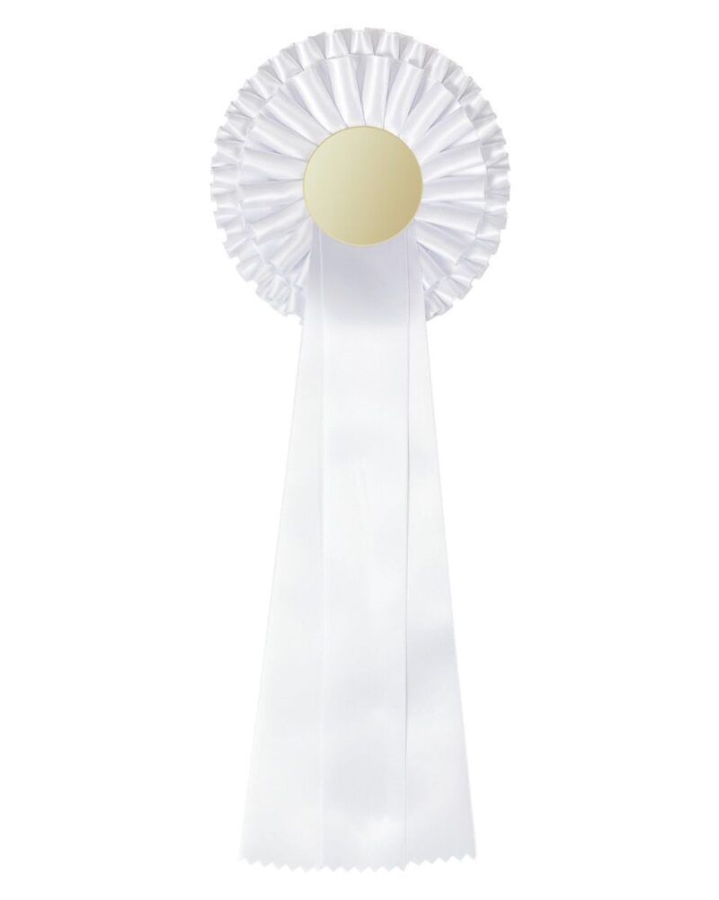 Superfine rosetter av høy kvalitet. Rosettene er lagt av silkemykt stoff. Rosettene kan lasergraveres med egen logo og eller tekst i senterfeltet eller på trykkes på båndet.