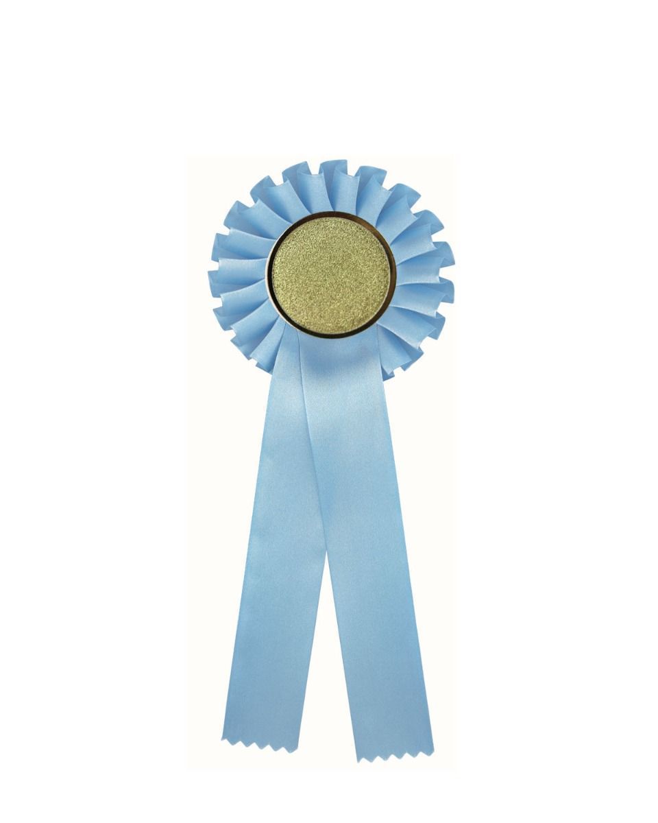 Lyseblå rosett i acetat med valgfritt motiv.