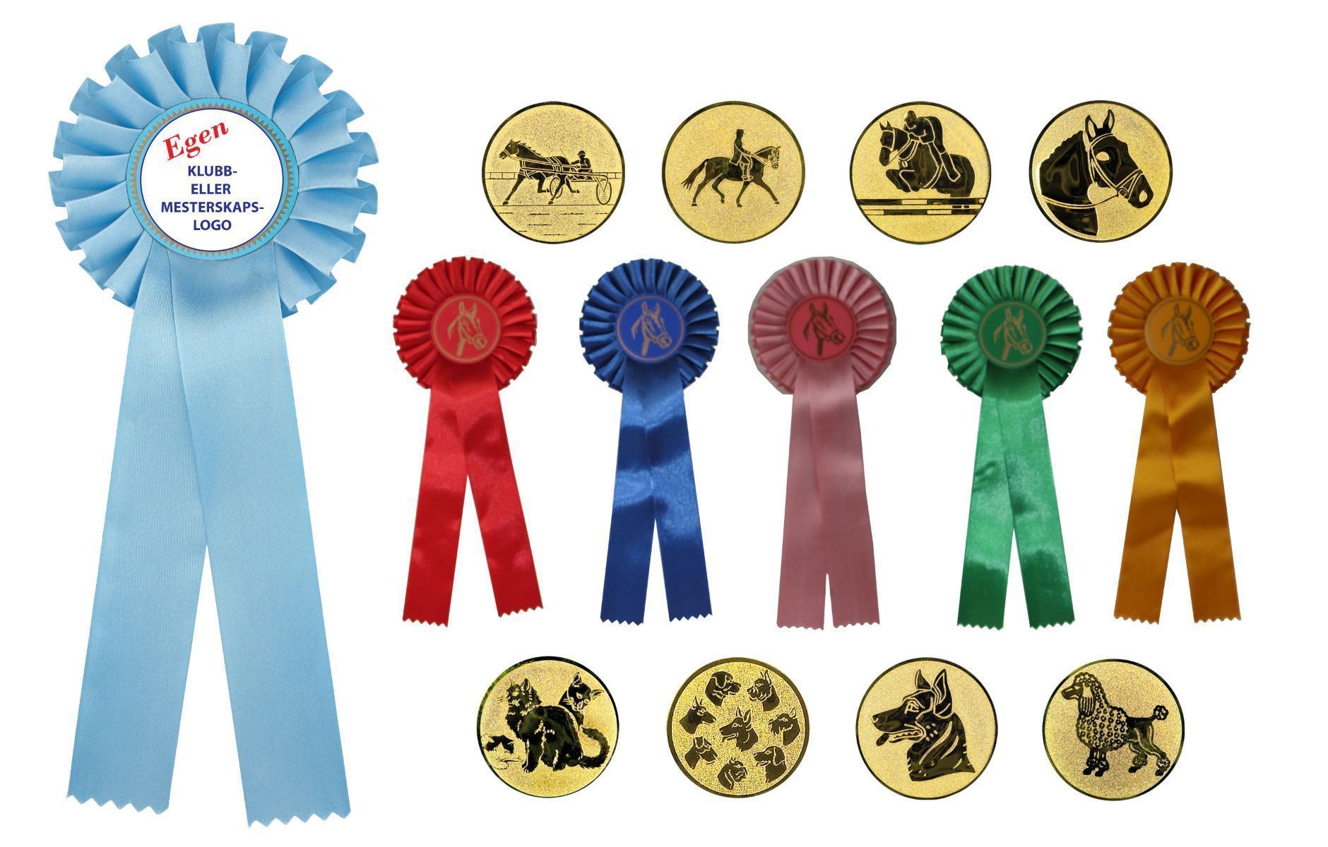 Flott og enkel rosett. Kan graveres med egen logo og eller tekst i senterfeltet. Ønsker du trykk på båndet? Kontakt oss!