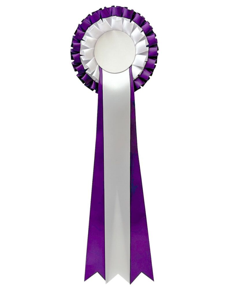 Rosetter i lilla og hvit farge. Rosetter som passer perfekt til hundeshow.