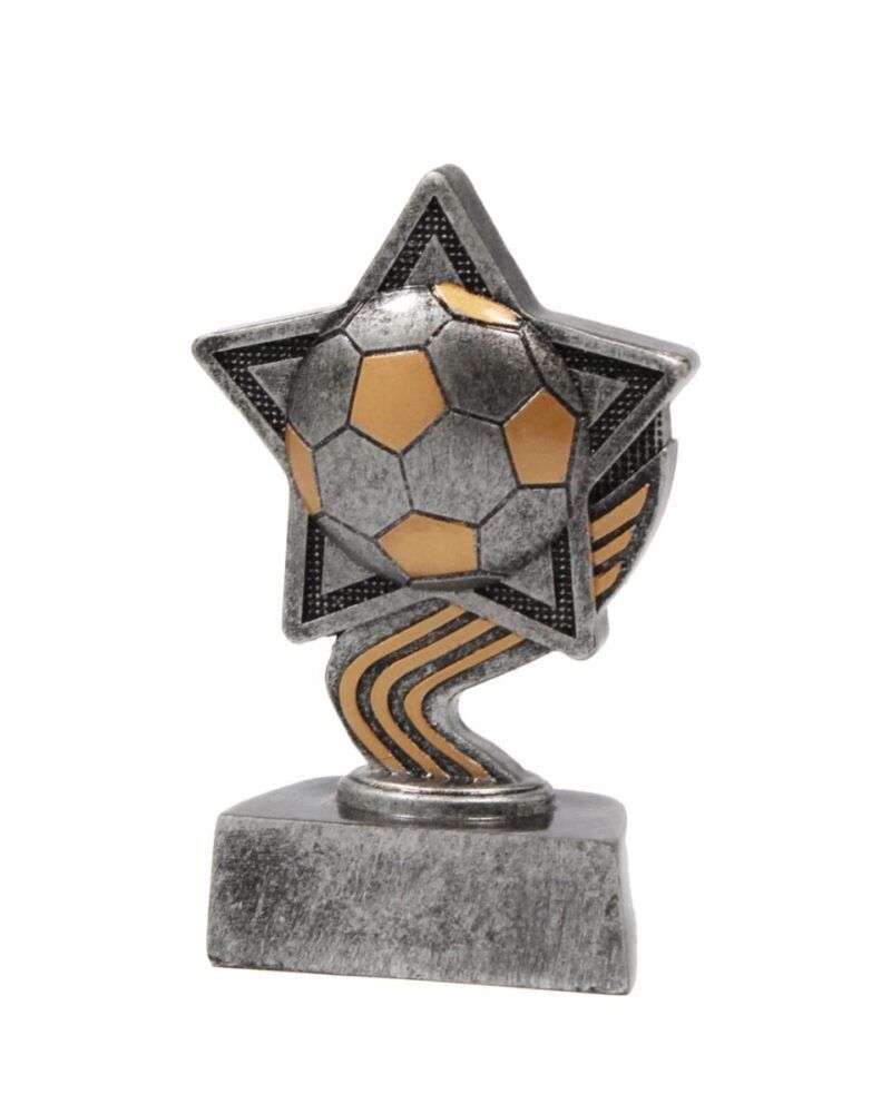Ballstatuetten er helstøpt i resina i antikk finish. En prisgunstig premie til både fotball og håndball.