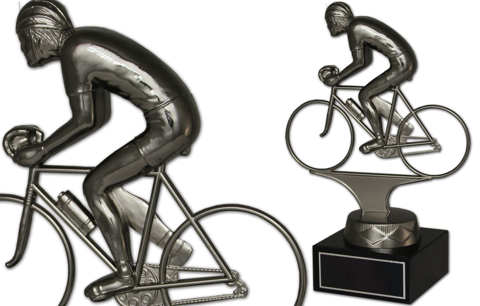 Superfin sykkelstatuett i metall.Sykkelpremien er montert på marmorsokkel.